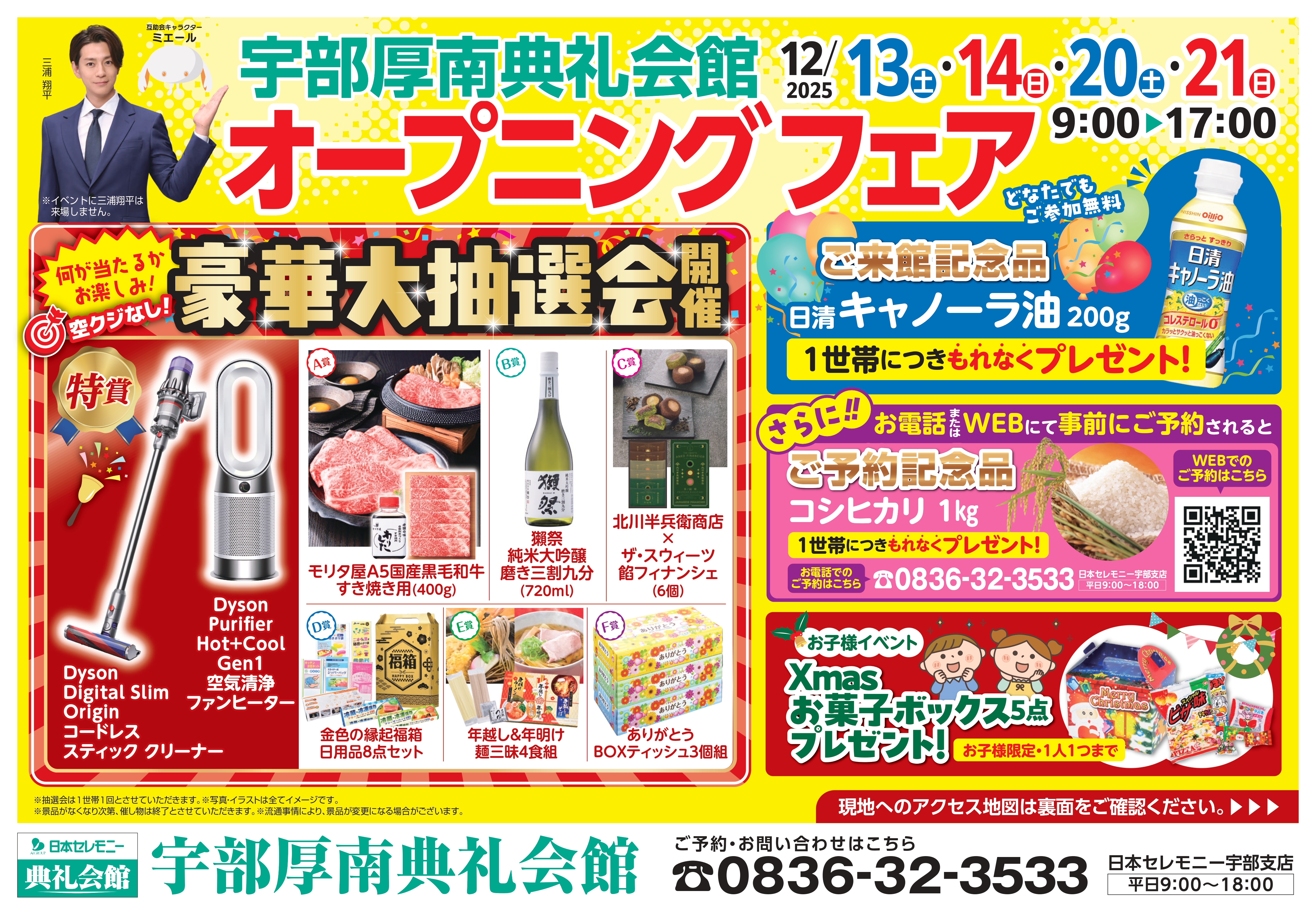*オープニングフェアのご予約・お問い合わせは「日本セレモニー 宇部支店」にて承ります
